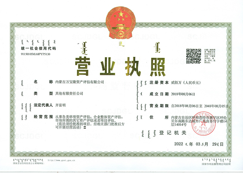 歡迎您來(lái)到內(nèi)蒙古萬(wàn)寶隆資產(chǎn)評(píng)估有限責(zé)任公司!